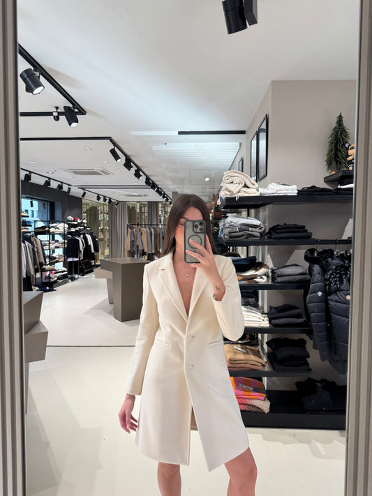 Cappotto beige con frange – Please Cappotto lungo dal design contemporaneo con frange decorative...