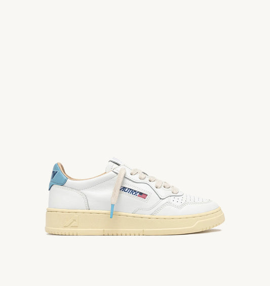 SNEAKERS MEDALIST LOW IN PELLE BIANCA E BLU E SUEDE BEIGE Rielaborata con proporzioni moderne...