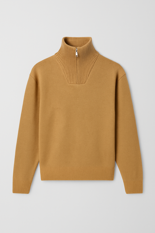 Questo maglione con zip a mezza apertura in tessuto lavorato a coste color marrone mélange...