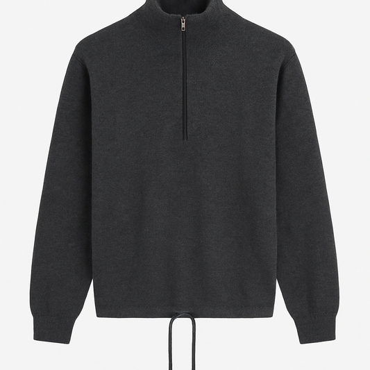 maglione grigio scuro mezza zip in stile minimal e moderno. Ha collo alto con zip...