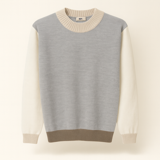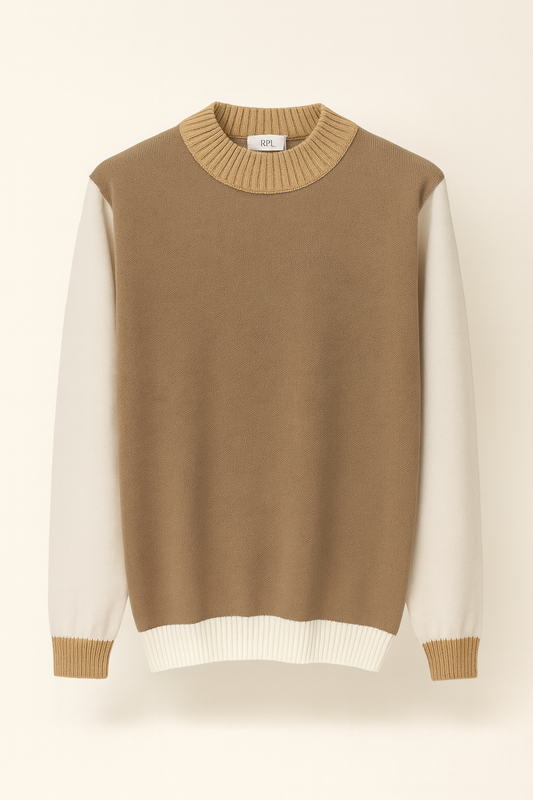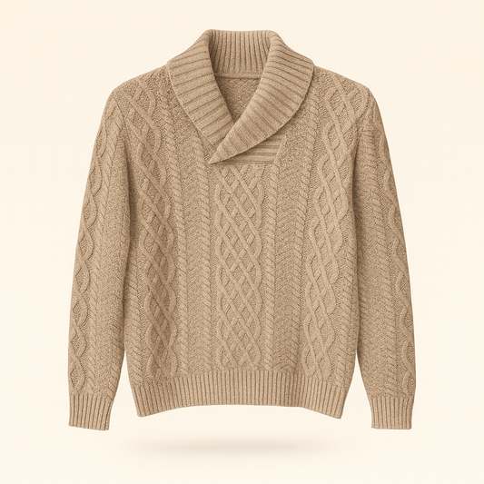 Camicia in maglia a coste color beige chiaro, con chiusura a bottoni e tasche frontali...