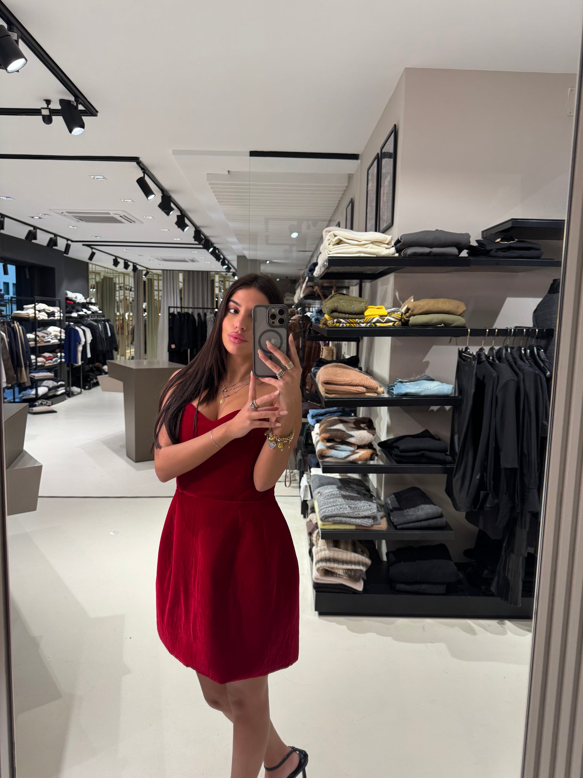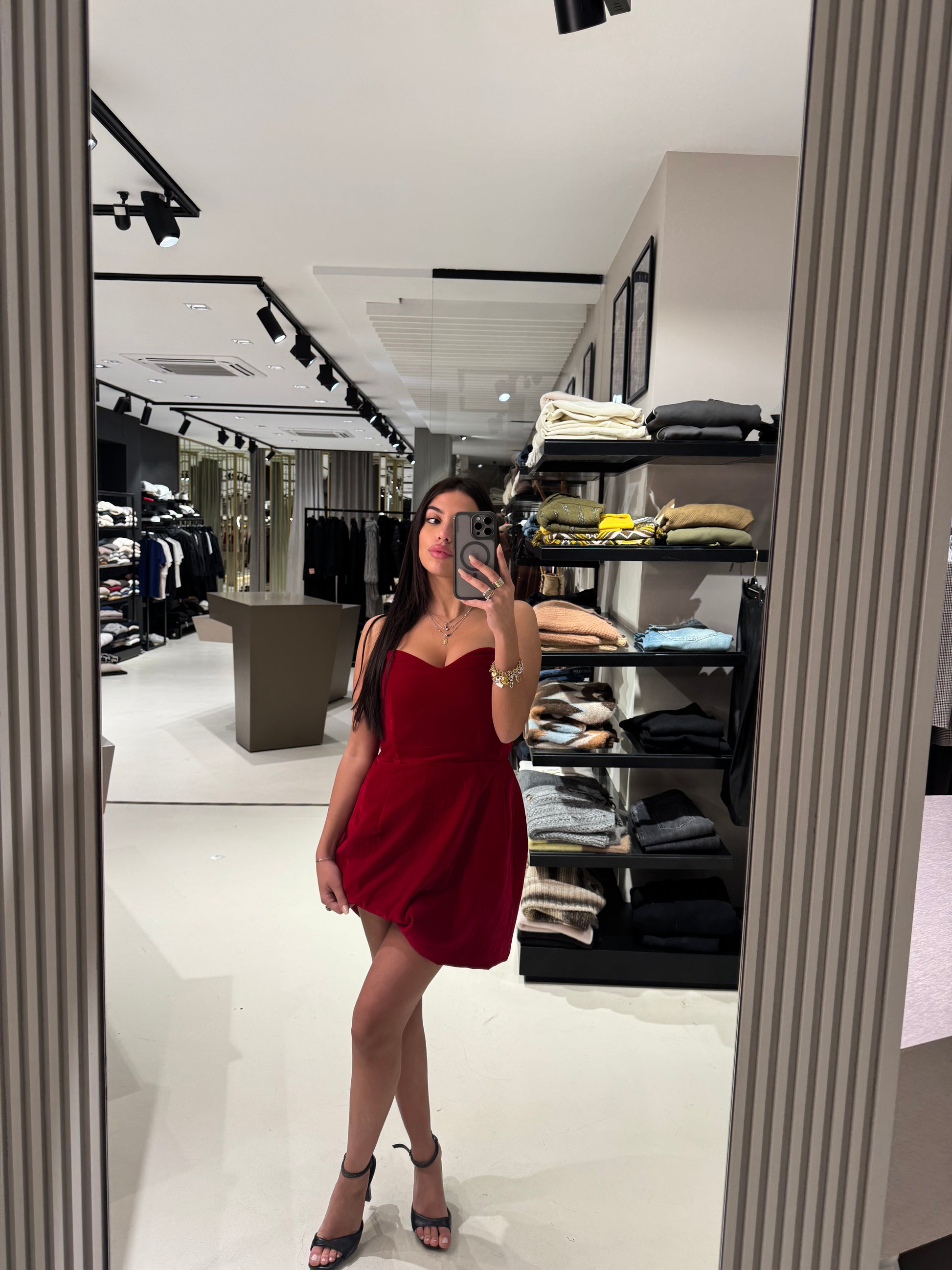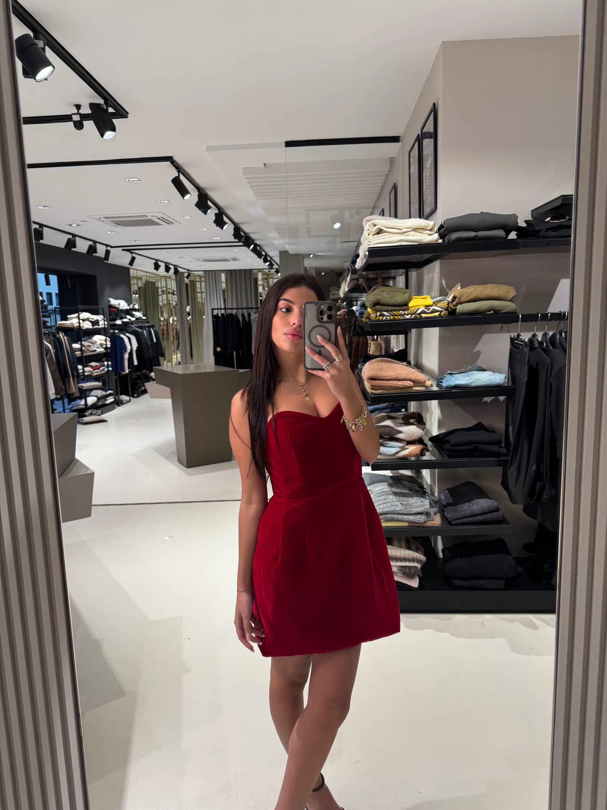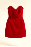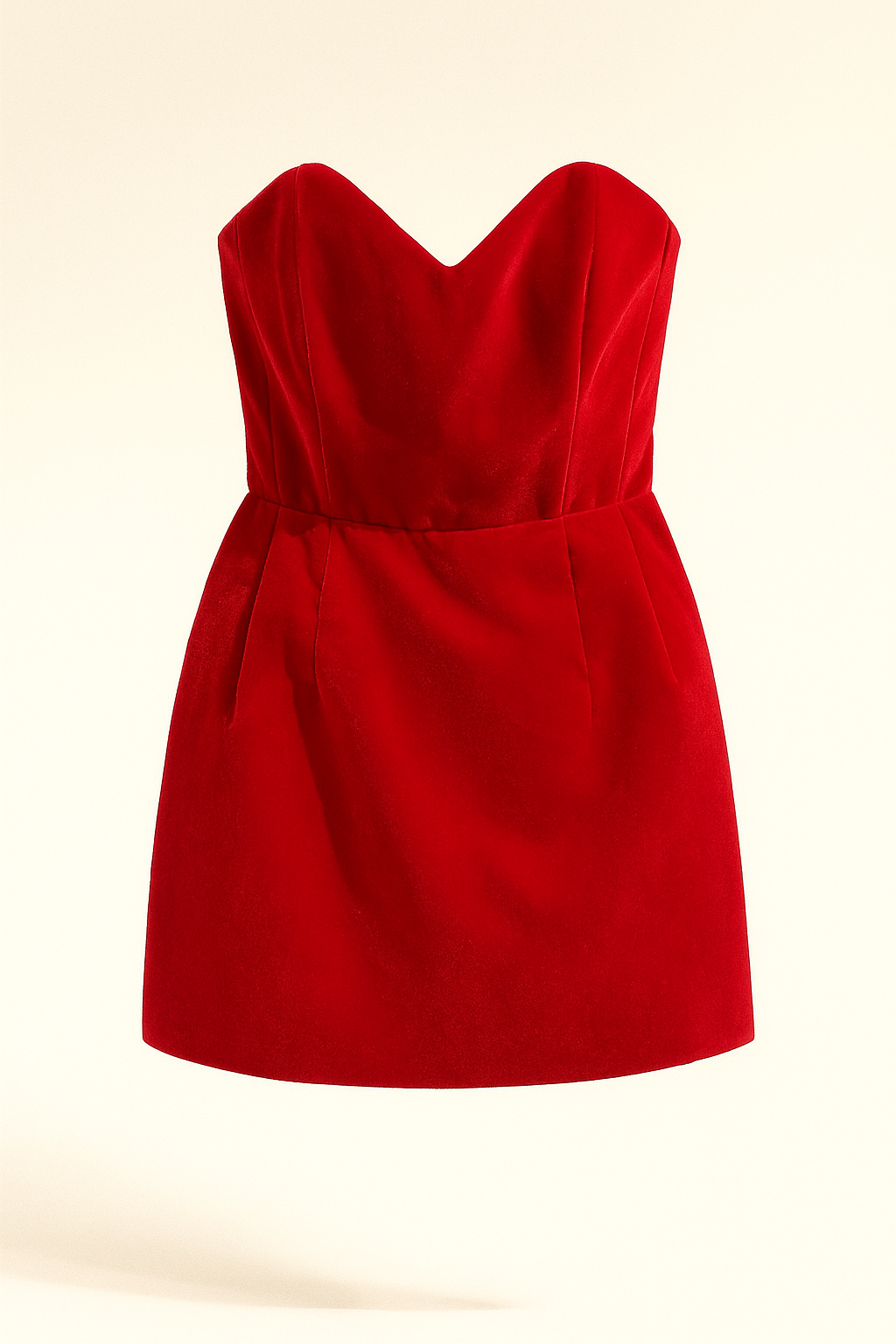 Mini abito in velluto con scollo a cuore e spalline sottili removibili. Un modello raffinato e sensuale, ideale per le feste e le serate speciali.
