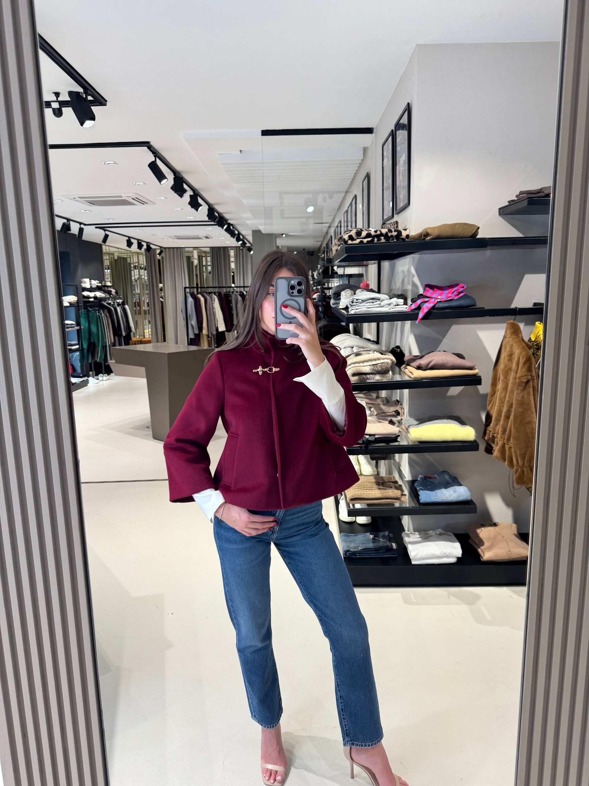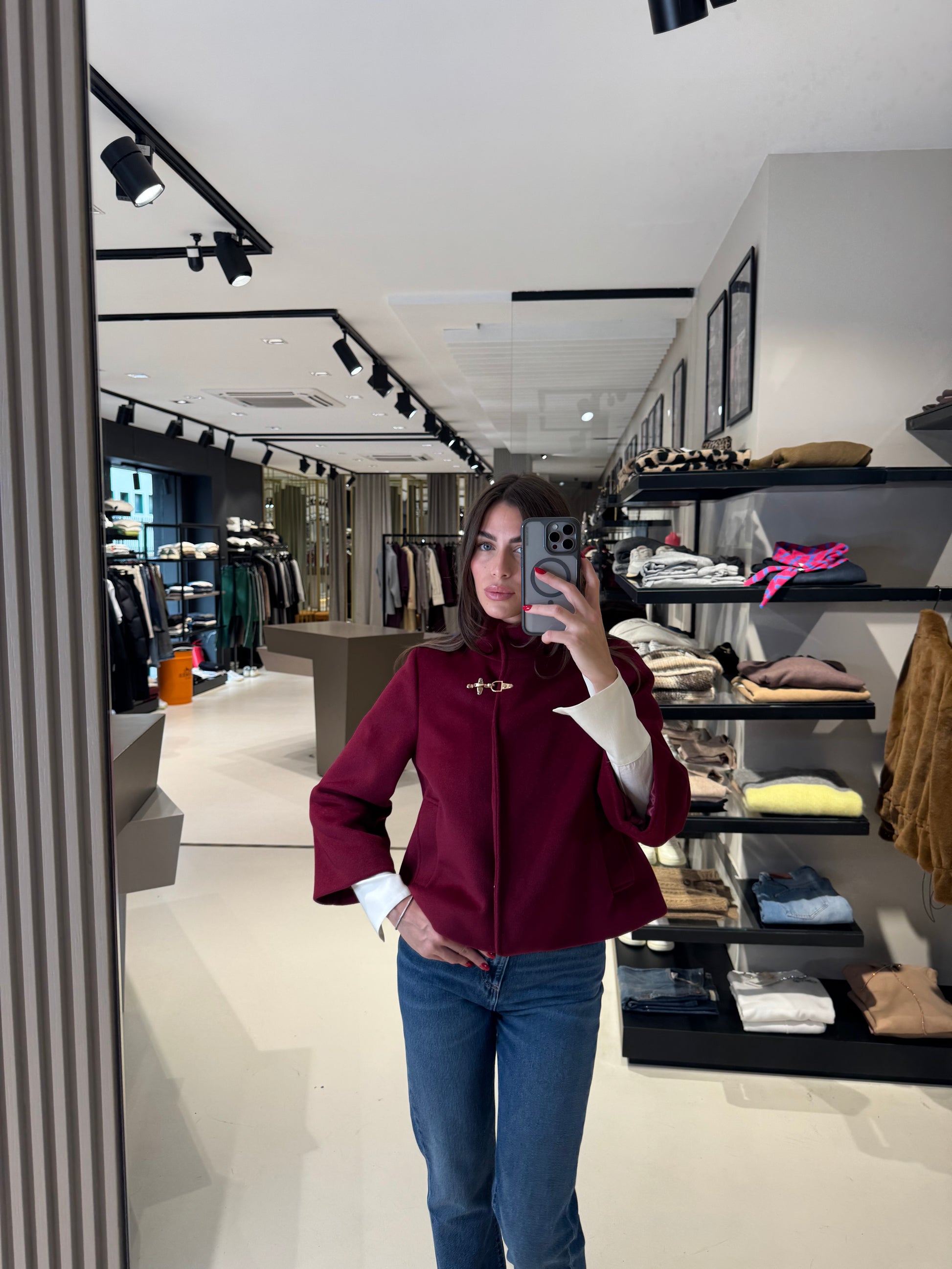 Cappotto Corto Bordeaux con Chiusura Gioiello