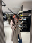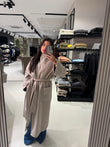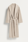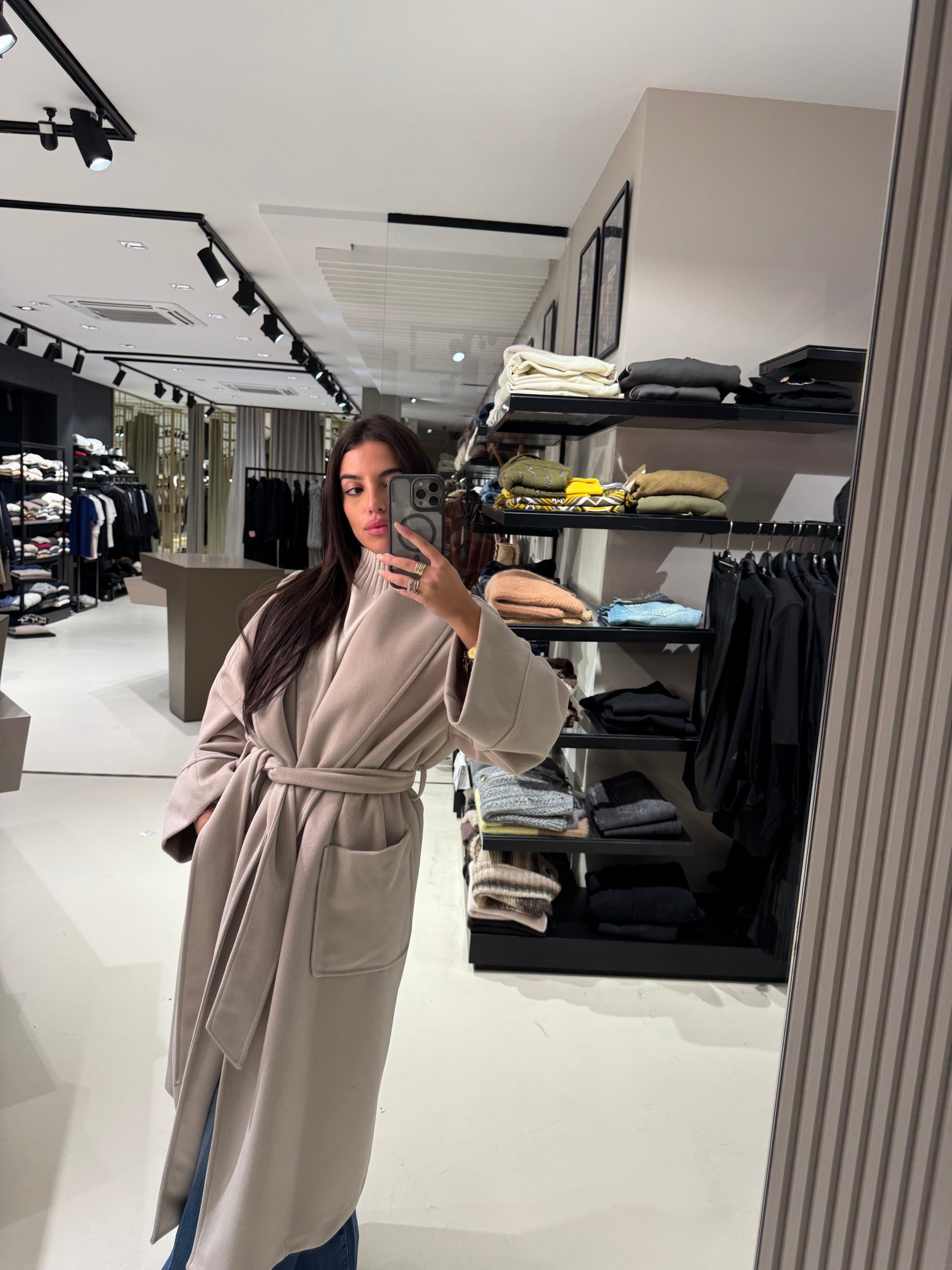 Cappotto lungo con linea avvolgente e cintura coordinata in vita. Morbido e versatile, dona un’eleganza rilassata perfetta per tutti i giorni.