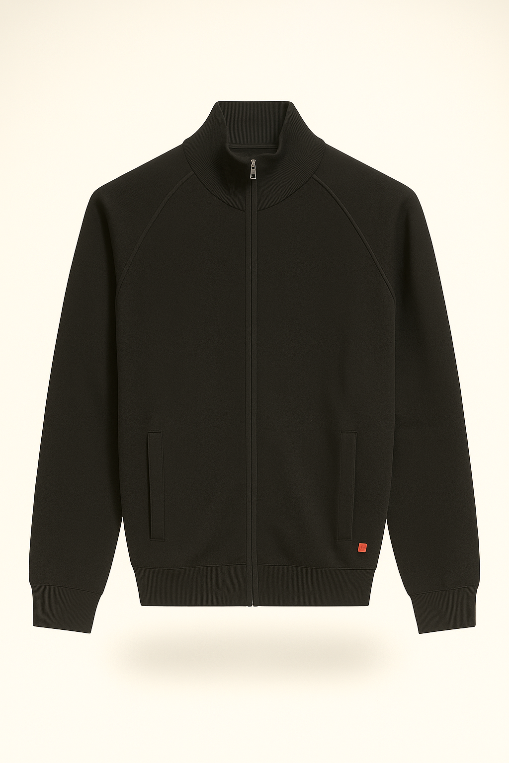 • Dettagli: chiusura zip, collo alto a coste, tasche laterali, piccolo logo rosso sul fondo