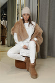 Giacca in morbida eco pelliccia con colletto classico e linea leggermente svasata. Calda, elegante e versatile, dona un tocco sofisticato a ogni look invernale.