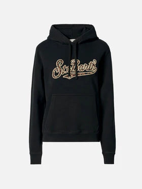 Virginia nera alza il volume del casual: il patch logo con inserto leopardato aggiunge una nota grintosa.