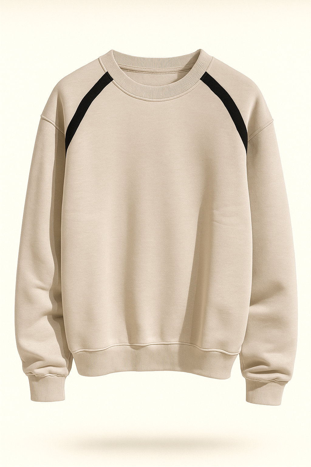 Felpa girocollo in cotone con inserti neri sulle spalle e maniche ampie con polsini arricciati. Un modello dallo stile contemporaneo e rilassato, ideale per un look casual di carattere.