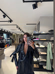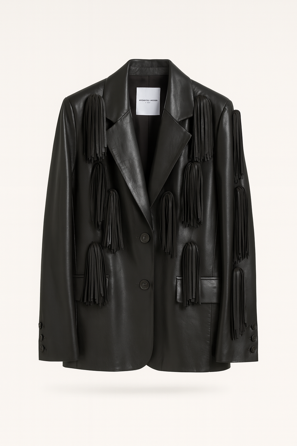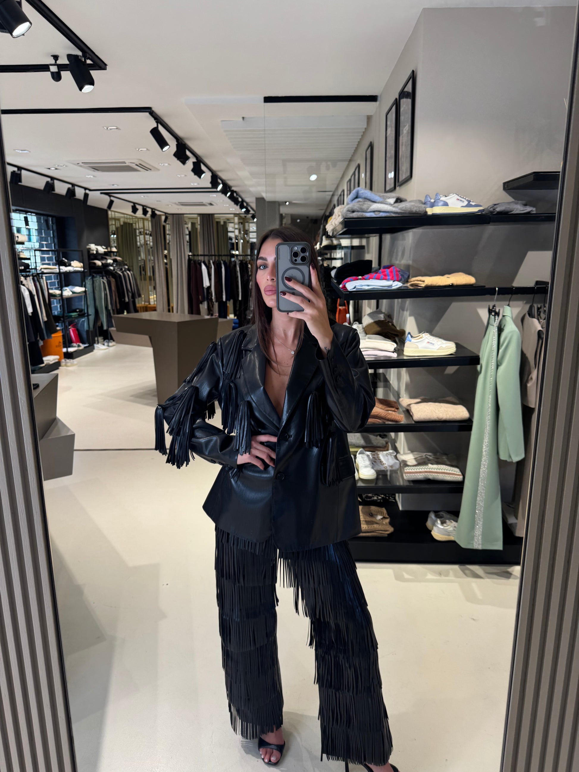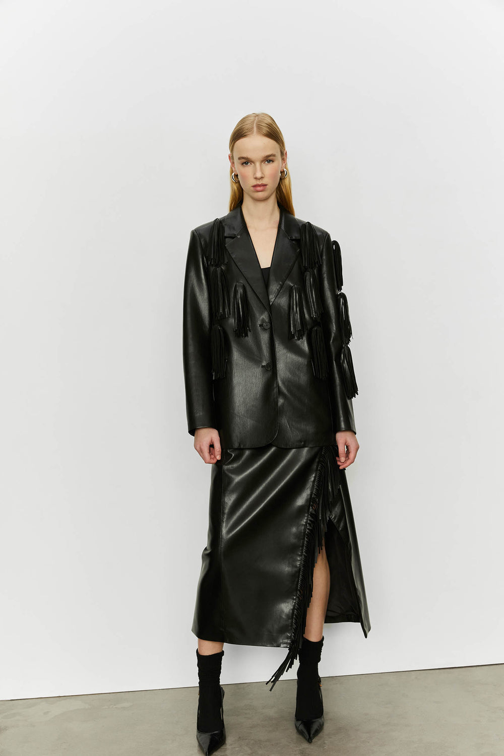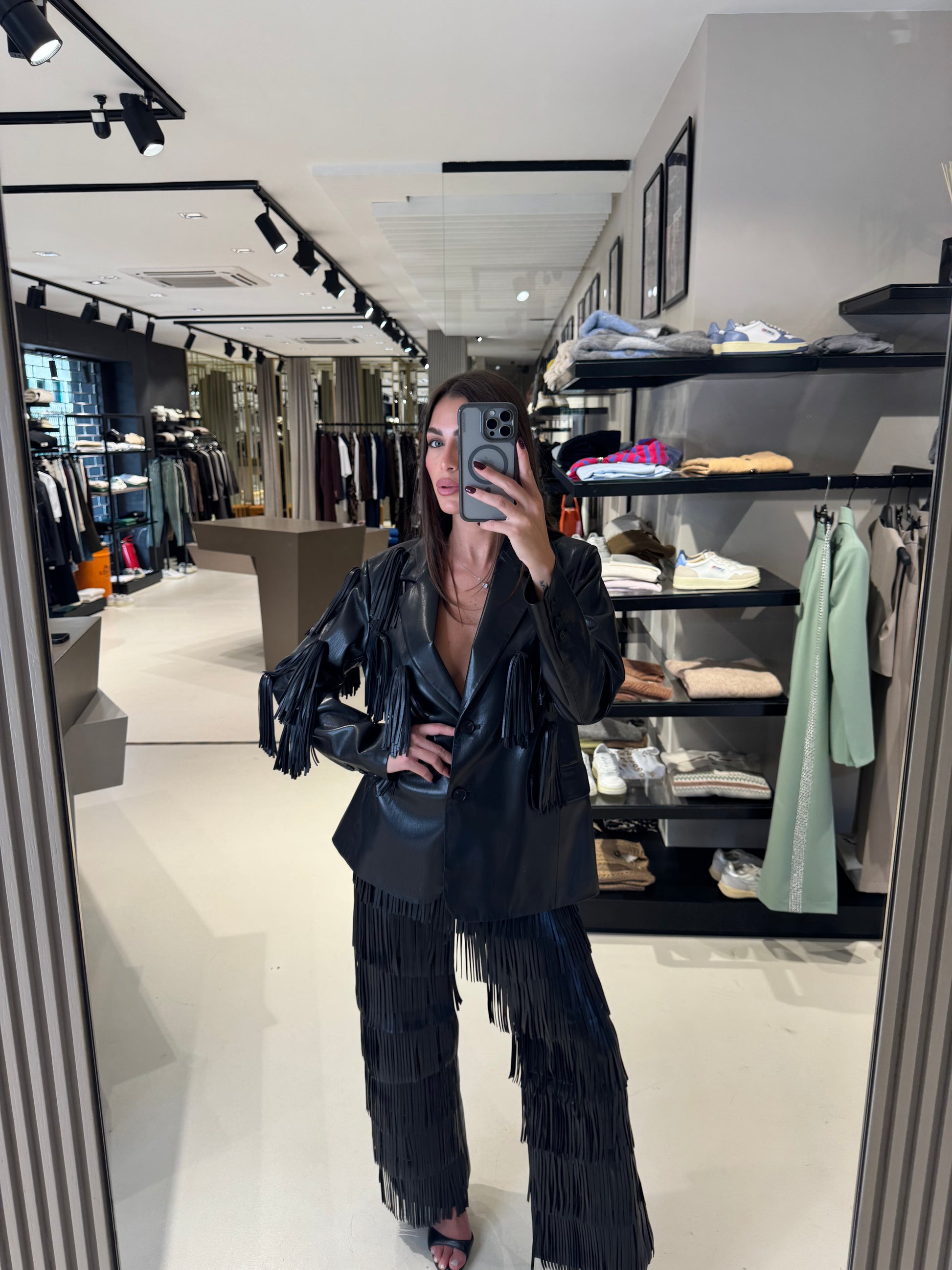 BLAZER IN ECOPELLE CON NAPPINE FRANGE.
