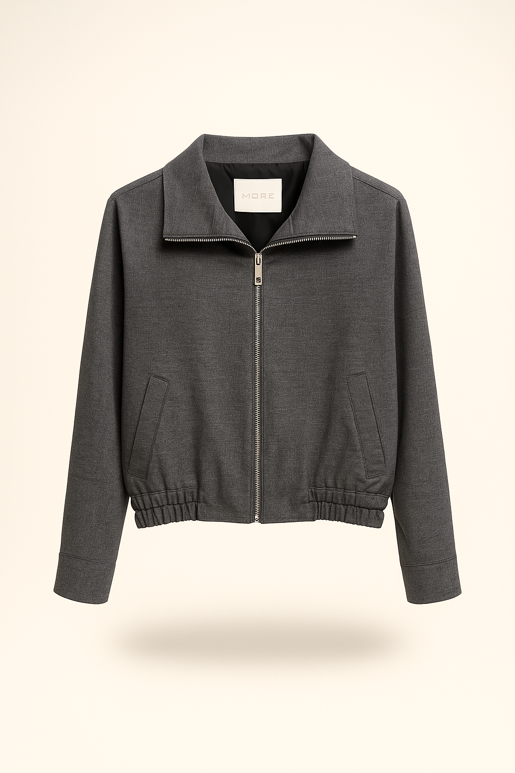 Giacca corta in tessuto compatto con chiusura a zip frontale. Linea moderna con fondo elasticizzato che valorizza la silhouette, perfetta per look casual-chic.