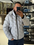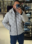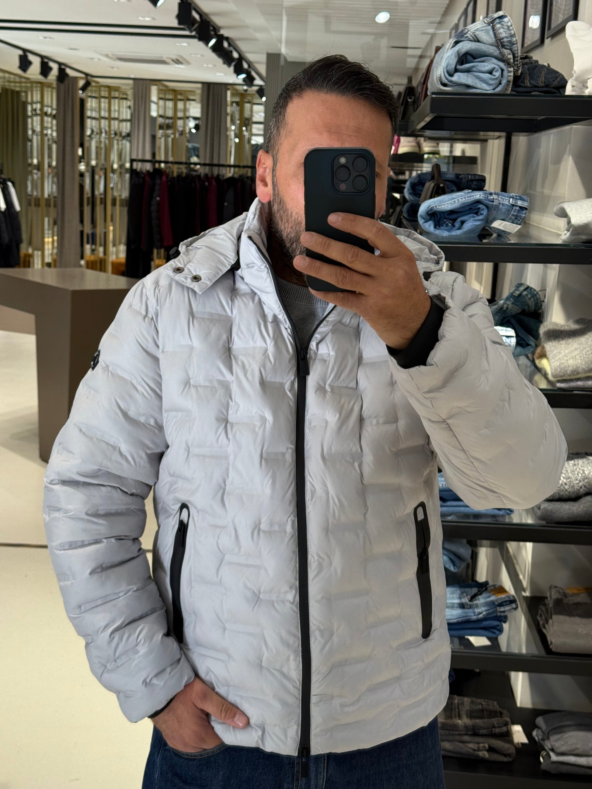 Piumino leggero con trapuntatura a quadri e zip a contrasto. Dotato di cappuccio regolabile, tasche laterali con chiusura a zip termosaldata e polsini elasticizzati per una maggiore protezione dal freddo. Un capo versatile, perfetto per l’uso quotidiano e per un look urbano contemporaneo.