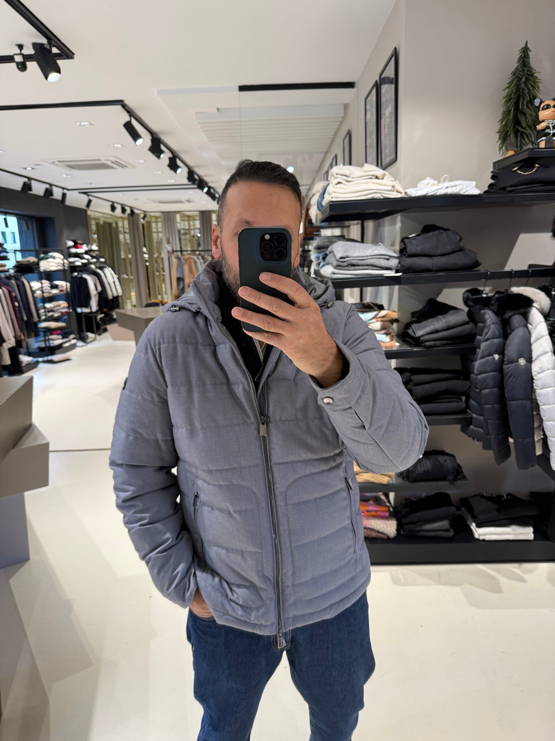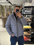 Piumino da uomo in colore grigio mélange, leggero e caldo, ideale per la stagione fredda. Realizzato in tessuto tecnico trapuntato con imbottitura sintetica ad alte prestazioni. Dotato di cappuccio fisso, chiusura frontale con zip e tasche laterali con cerniera. Linee pulite e design essenziale per un look urbano e funzionale.
