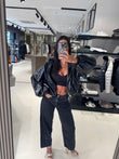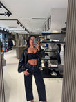 Jeans in denim nero con vestibilità wide leg e vita alta. Le cuciture verticali frontali donano un effetto slanciato alla gamba, unendo comfort e stile. Versatile e contemporaneo, è perfetto per look casual o streetwear, abbinato a sneakers, stivaletti o mocassini per un tocco urban chic.