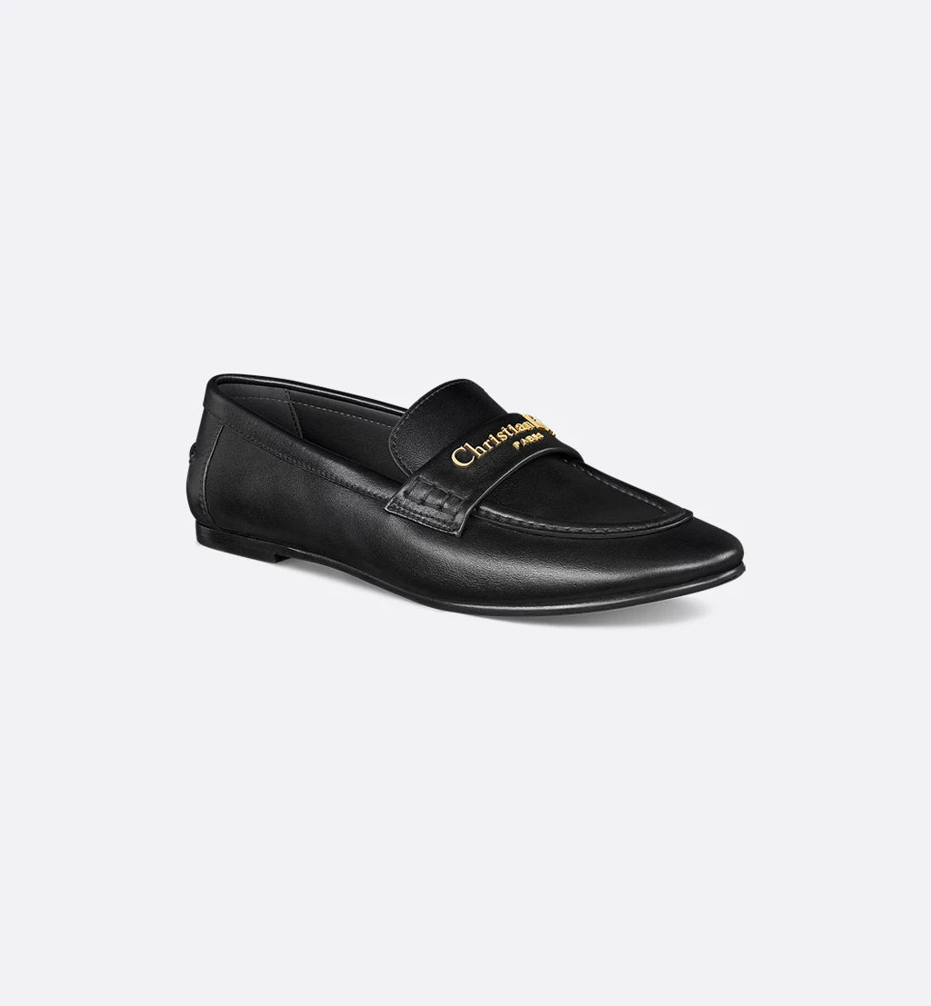 Questo mocassino Dior Boy, novità dell’Autunno 2025, si ispira con eleganza a un’estetica classica. La tomaia, realizzata in pelle di vitello morbida nera, presenta una punta a mandorla e la firma Christian Dior Paris in metallo con finitura color oro sulla mascherina. È ideale per completare con eleganza qualsiasi look della stagione.