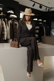 Pantalone dritto a vita media con gamba fluida ed elegante effetto puntinato tono su tono. Perfetto abbinato alla giacca coordinata per un completo sofisticato.