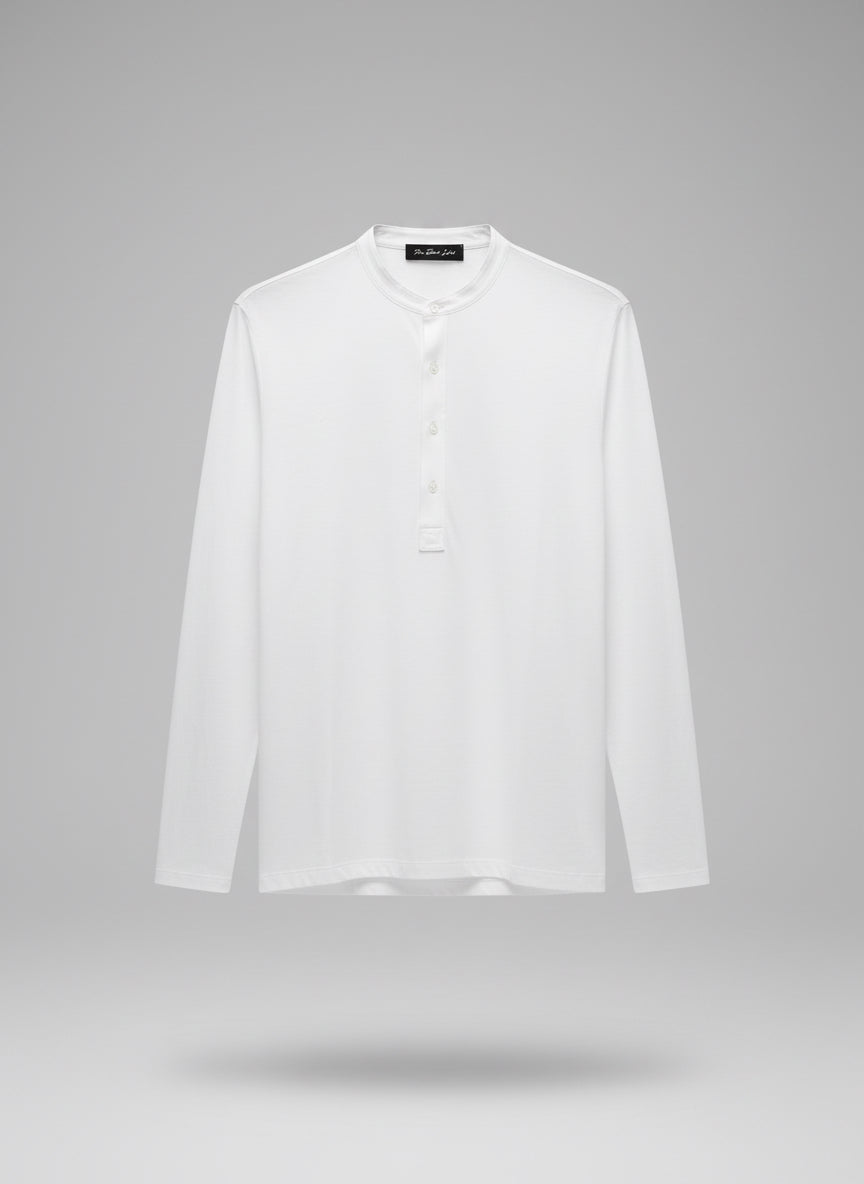 Maglia a manica lunga con collo serafino e abbottonatura frontale. Realizzata in pregiato filo di Scozia certificato, garantisce una lucentezza naturale, massima traspirabilità e una morbidezza superiore sulla pelle. Capo essenziale e raffinato, ideale per un’eleganza quotidiana senza tempo.